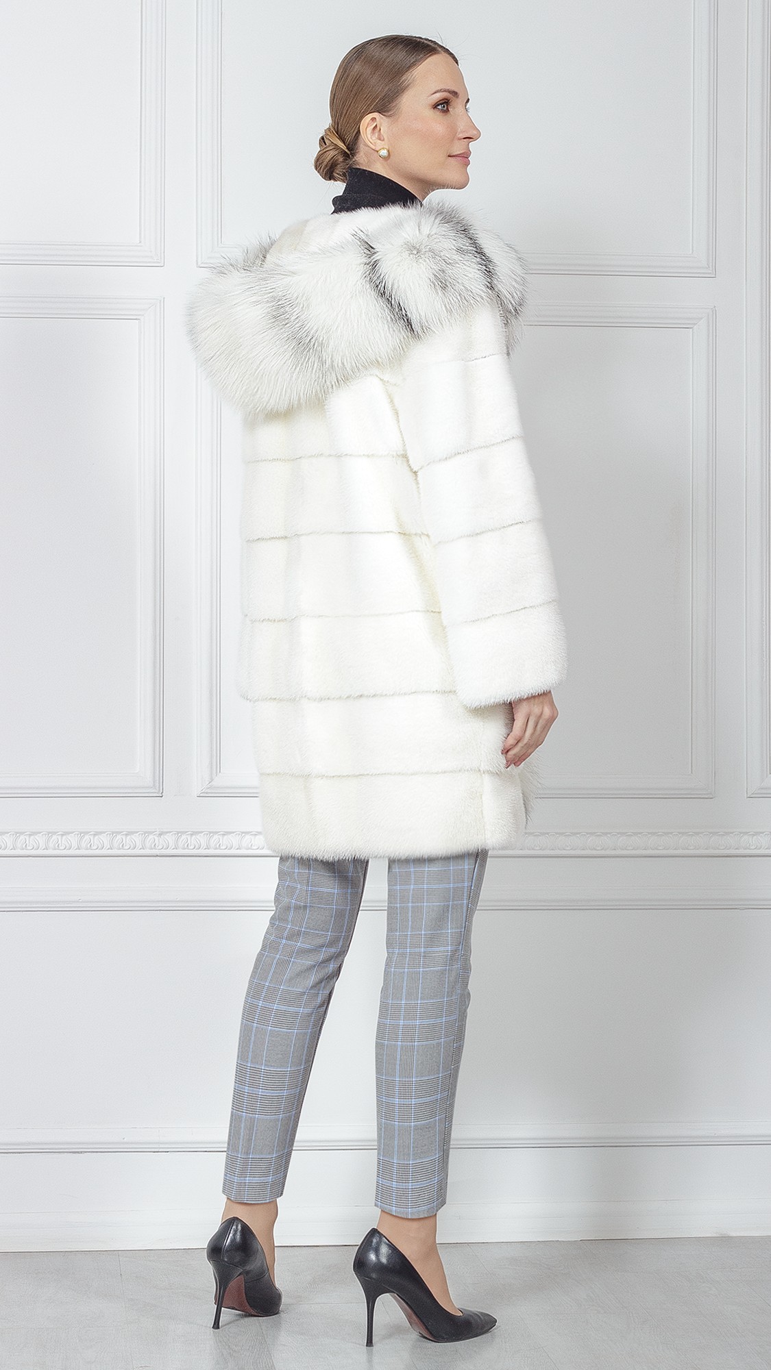 Шуба из меха норки, отделка лиса